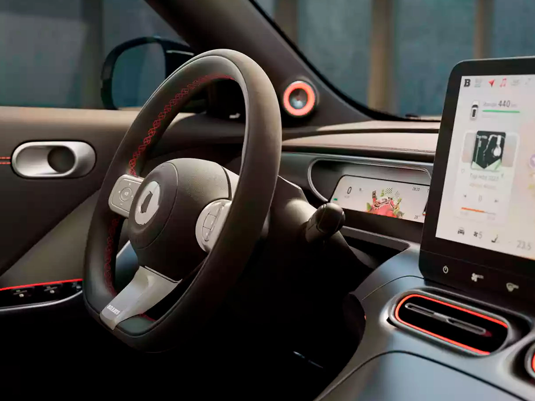 El smart #1 ofrece un interior de lujo con tecnología intuitiva, materiales premium y un diseño acogedor, garantizando confort y sofisticación en cada viaje.