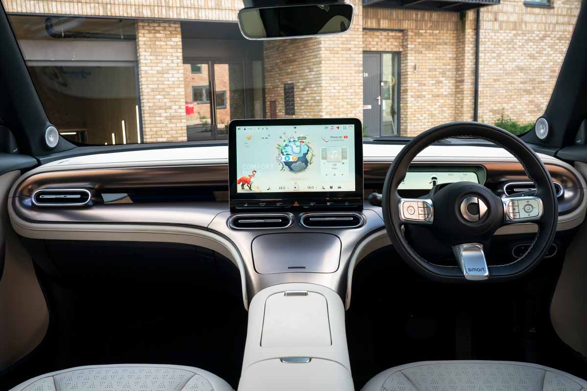 Equipado con un sistema de infoentretenimiento desarrollado en colaboración con ECARX, el smart #1 integra Apple CarPlay y Android Auto de forma inalámbrica. Incluye un asistente de voz activado por "Hey Smart", que permite controlar funciones como la climatización y la navegación sin necesidad de tocar la pantalla.
