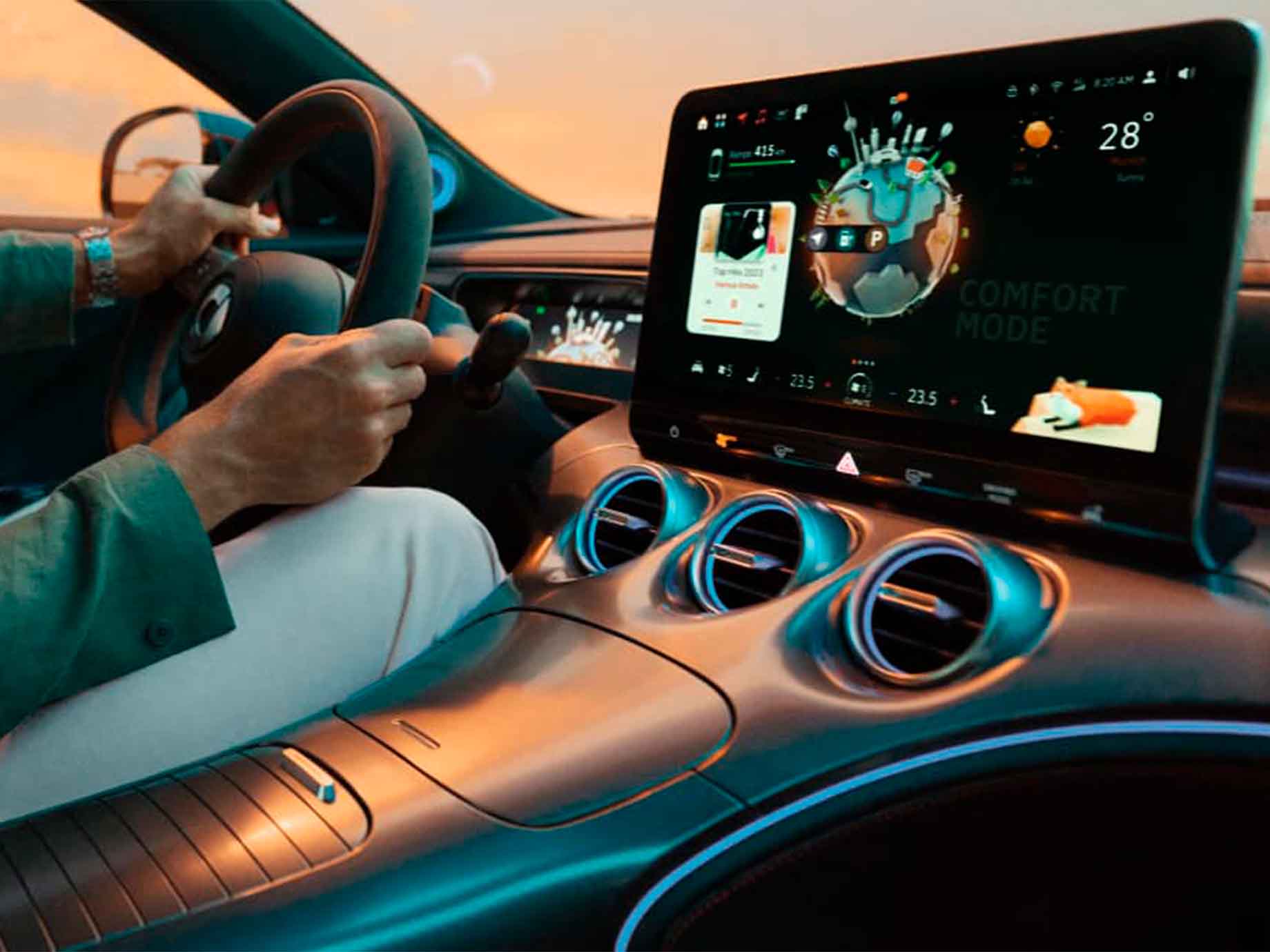 Cabina elegante con acabados premium, iluminación ambiental personalizable y un diseño centrado en el confort, con amplio espacio para pasajeros y tecnología intuitiva al alcance de la mano.